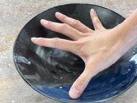 出来上がった皿をそーっと持ち上げます。右が先生のつくったお手本。