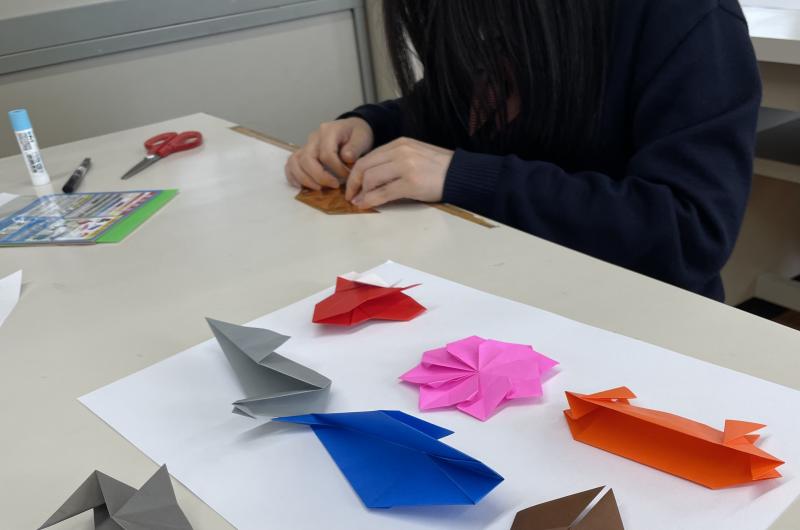 検定では、指定課題1つと自由課題5つの計6つの折り紙制作を規定時間内に行います。日頃の練習の成果を発揮し、真剣に取り組んでいました。