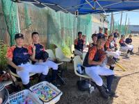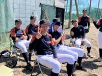 対戦チームのアップの時間にお邪魔すると、選手たちが笑顔で迎えてくれました。みんな気力十分。夏本番に向けてボルテージが上がってきています。今日は2回試合をするとのこと。