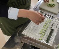 検定では、30秒間できゅうりの半月切りをいかに正しく、多く切ることができるかを評価します。きゅうりの枚数だけでなく、包丁の持ち方や姿勢なども大切になります。