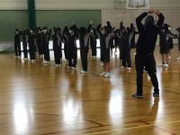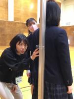 防犯教室では生徒が参加して、護身術の実演を行いました。警察官の指導の下、生徒は真剣な表情で取り組んでいました。また、SNSの危険性についても話をしていただきました。