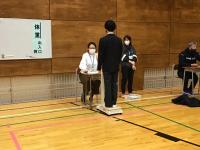 どれだけ成長したかな? 身長の計測結果に納得いかず、「先生、もう一回測って! お願い!」と頼み込む生徒も見られました。もっと伸びてるハズ・・・?