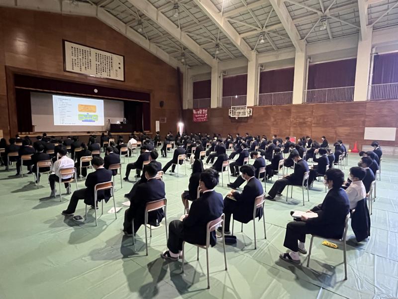 11月21日(月)の放課後、部活動合同トレーニングを行いました。いしかわ総合スポーツセンターの方を講師としてお招きし、すべての運動部1、2年生が参加しました。冬季練習に向けてタバタトレーニングやドローイン、体軸を意識したトレーニングもありつつ、楽しくボディコンバットで締めくくりました。