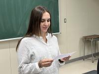 「外国語を学ぶことは難しい。私も7年間、日本語を学んできましたが、一緒に話す人がいなかったので、なかなかうまくなりませんでした。寺井高校ではみなさんの外国語(英語)を学ぶお手伝いがしたい。」と挨拶がありました。