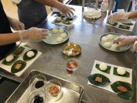 全員が初めての押し寿司作りで、中には押し寿司を食べたこともない生徒もいました。講師の方々から押し寿司の由来の説明などを受けながら、作り方を丁寧に教えていただき、楽しく作ることができました。