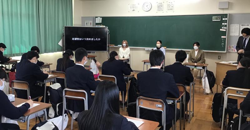 3月17日(木)5限に、「卒業生と語る会」を1、2年次生対象として、新型コロナウイルス感染症対策を徹底した上で行いました。