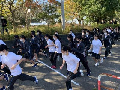 11月4日(木)秋晴れの中、本校の伝統行事であるマラソン大会を和田山公園で開催しました。この日のために練習を重ね、男子は約4.5Km、女子は約3.0Kmを走りました。PTA実行委員の皆様にもコース観察員としてご協力いただき、生徒・教員・保護者が一緒に作る充実した大会になりました。