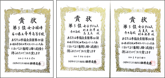 入賞した、バドミントン部、ウエイトリフティング部の皆さん、おめでとうございます!