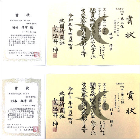 第21回高校ウエイトリフティング競技石川大会 いぬわしカップ