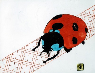 九谷色絵陶板「天道虫」  文教会館理事長賞