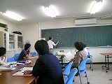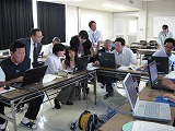 金沢大学において、研修生が普段の授業で工夫したいと考えている点(霧箱に使う寒剤・透磁率と誘電率をイメージさせるには・渦電流の導入・音の干渉の理解をし易くするには・吸収スペクトル(Naなど)を上手く見る方法 等)について協議を行い、担当教員から指導助言をいただきました。 | |