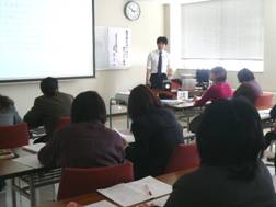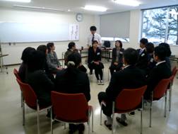 2012年3月2日 16時28分 2月29日(水)石川県立七尾城北高等学校にて「生徒の自己指導能力を高めるストレスマネジメント教育」の研修を行ないました。今回の研修には教師がリラクセーショントレーニングの方法を習得するだけではなく、次年度からストレスマネジメント教育を学校全体でどのように実施するかを検討するというねらいがありました。参加者全員が一人ひとり実施内容とその理由を発表されました。どの発表者も4月実施や継続的な実施を述べられていました。