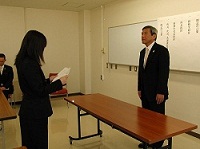 研修生代表挨拶では,所長の言葉に応えるように,「さまざまな事例や問題に積極的に関わり,学校現場で迅速に活用できることを意識して研修に臨んでいきたいと思います。」という決意表明がありました。