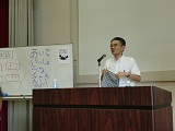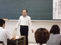 講師に、横浜国立大学教育人間科学部 教授、附属教育デザインセンター長の髙木展郎氏をお迎えし、「高等学校国語における言語活動の充実と授業づくり」という演題で2時間強を超える熱い講義をいただきました。時代によって求められている学力の変遷というものが詳細なデータを元に語られ、「今授業を変えることが生徒の未来をつくる」という言葉が、先生方の実感に強く迫った様子でした。