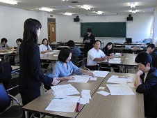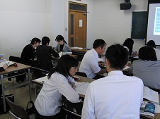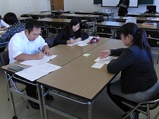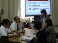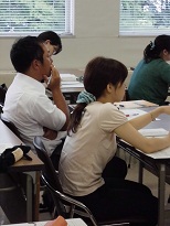 9月27日(金)の午後、高等学校、特別支援学校高等部国語科の教員を対象にした、「言語活動の充実をはかる授業づくり」の研修が行われました。この研修は、7月31日に横浜国立大学の髙木展郎先生をお招きしご講義いただいた研修に続く2日目でした。前半は、前回の講義を元にプレ実践してみたことや、10月以降の実践に向けて考案した指導計画を持ち寄ってグループで話し合い、つけたい力にふさわしい言語活動について理解を深めました。また後半は、入試に必要な言語能力の指導のあり方について学びました。