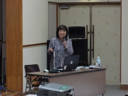 講師には、東京都新宿区立津久戸小学校で主任教諭・司書教諭として、この3月まで同校の「学校図書館を活用した確かな学力づくり」に中心となって尽力されてこられた、小川三和子氏をお迎えし、具体的な実践の数々をお話しいただきました。国語は本県と同じ光村図書の教材での実践例であったため、「心がウキウキとなるような取組をたくさん紹介していただきました。学校に戻って共有したいです。」という声も聞かれました。