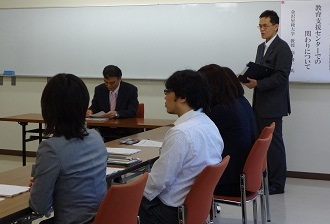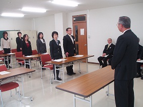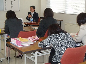 4月19日(金)、平成25年度栄養教諭研修がスタートしました。開講式では、今年度任用替えになられた3名の先生方に、宗末所長より「食を通して子どもたちと関わり、人格を形成する『先生』として、その成長に深く関わっていってほしい」との激励の言葉をいただきました。