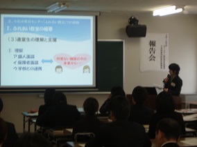 3月8日(木)には、3人の研修生がそれぞれ一年間の研修の成果を報告し合いました。それぞれ、学校を離れ不登校児童生徒や問題行動等のある子ども達と関わるなかで「学んだこと」や「学校現場で今後実践していきたいことや課題」などについて、20分で発表しました。その後の質疑応答も活発になされ、実りのある時間となりました。全ての参加者から寄せられた『教師として、細かな観察やリソースに気づく発想の豊かさが大切であると改めて感じさせられた。学びを学校に戻られたときに、実践として活かせるようご活躍ください。』などのメッセージは、3名の研修生に送られました。