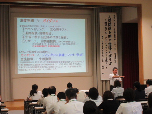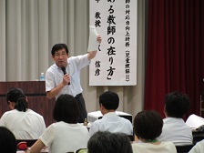 今日的課題研修「人間関係を耕す指導の在り方」が、8月19日(金)、石川県教育センターにて、杉並区立天沼中学校校長の藤川 章氏をお迎えし行われました。