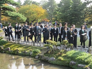 石川県立歴史博物館や金沢老舗記念館の展示資料について解説をふまえて見たり、兼六園や金沢城を解説を受けながら実際に歩きました。普段、私たちがあまり気に留めていないことについても、講師から面白く興味を誘う話がたくさんあり、金沢のまちを再発見することができました。初任者は、教える側がよく理解し面白味を知ることで、生徒にいきいきと伝えることができることを講師の話しぶりから学び、教員としての専門性を高めなければならないと感じた1日でした。