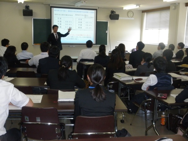 クロス集計から分析し、問題発見、課題設定、解決策の提示までの一連を個人で考え、紹介し合う場面では、みなさんが熱心に取り組み、発表を行っていました。