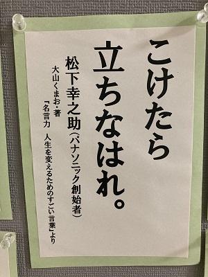 前に進めばこけることもあります。こけたら、立ち上がればいいんですよね。こけるのを恐れてじっとするより、勇気をもって進みたいですね。そして、「こけたら、立ちなはれ。」