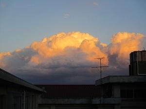 夕方、東の空に、オレンジ色に輝く発達した積乱雲が見えました。思わず「竜の巣だぁ!」と叫んだのですが、近くにいた生徒は「それって何ですか?」と言われました。世代間ギャップでしょうか・・。