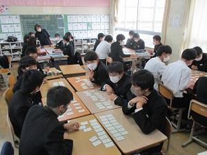 3年生の国語の授業で、百人一首をやっていました。みんな、真剣に札と向き合っていました。自分も遠い昔、何とか百首覚えようと努力したことがありました。でも、残念ながら挫折してしまいました。記憶力が不十分だったのか努力が不十分だったのか・・・。