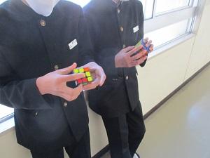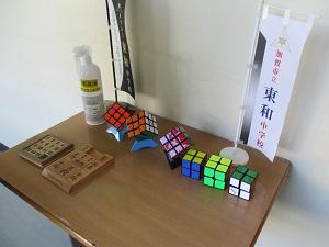 校長室前のルービックキューブを触っている2人がいました。揃えることに挑戦しているのかと思えば、なんと、どちらが早く6面合わせるかを競っているとのこと。レベルの高い争いでした。しばらくして戻ると、すべてのキューブが揃っていました。大人の予想を超え、子供たちができることが増えていきますね。