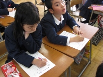 二年生は、オープンハートのアンケートとして、友だちにやさしくできたか、学校が楽しいですかなどについてアンケートをしました。