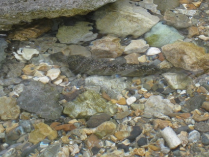 イワナがじっとしています。ここはどこ?