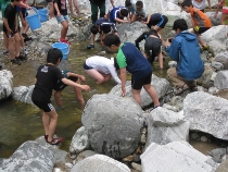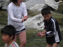 冷たい川水でしたが、みんなでイワナをつかみました。焼いて美味しくいただきました。イワナの命に感謝!