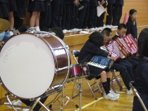 「紅蓮の弓矢」です。保護者の方や地域の方も文化会館まで足を運んでくださり、鑑賞してくださいました。とても落ち着いて、鳥越小学校の素直さや、力強さを表現できました。校長先生も思わず力が入ってどきどきして鑑賞しました。なかなかやるな!川崎ビームがとびました。