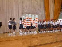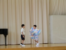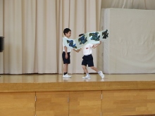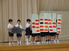 2年生のはつらつ集会は、国語の時間に習っている「スイミー」の劇です。はきりと大きな声で、みんなで協力することの大切さを、スイミーを通して伝えました。とてもどうどうとしていました。素敵でした。
