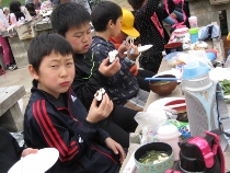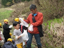 春の校外学習で、一里野ゲレンデへ行きました。山菜のこごみ・アザミ・こしあぶら・タラの芽・かたくりの花をとって天ぷら・アザミ味噌汁をつくりました。みんな美味しいといっておかわりを何度もしていました。こごみのゴマドレッシングがけもとても美味しかったですよ。
