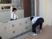 運動場出口 排水溝清掃
