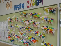 5年生 プレゼント 手作りメッセージカード 6年生は、1年生をエスコートしてインタビューしました、とても楽しそうな1年生でした。133名全員で、元気で素敵な学校にしましょう。