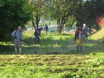 候にも恵まれ、校内・グランド・玄関前・教室横等の草刈り、窓ふき清掃がスムーズに実施出来ました。保護者の皆様には、草刈り機・トラックなど持参いただきましてとても助かりました。