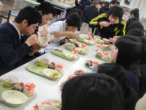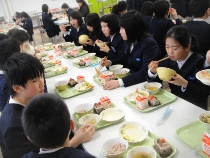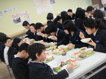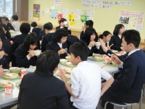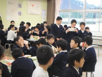 6年生は今日の給食が小学校では最後になります。年間、およそ190回弱の回数、給食が実施されていますので、小学生の間に1100回以上は食べていることになります。今日は、いつもより味わって食べました。