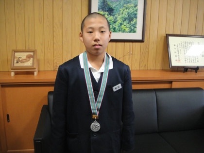 5年生の松◎ ◎さんが、全国小年柔道大会県予選団体戦で見事準優勝しました。昼休みに銀メダルを持って校長室へ報告に来てくれました。