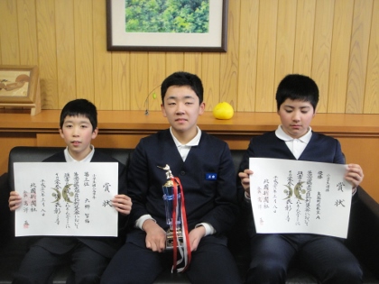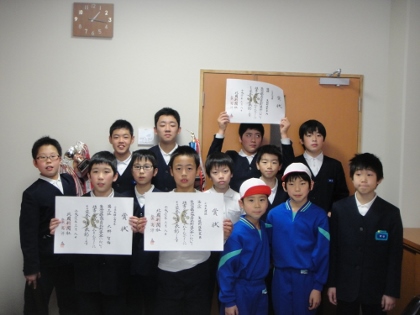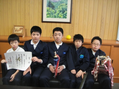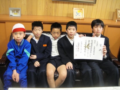 日曜日に、白山市鶴来地区防犯大会剣道大会がありました。鳥越小学校から、団体戦及び個人戦へ出場しました。今日、校長室へ受賞の報告に来てくれました。おめでとうございます。