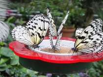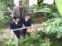 なかよし学級の二人は、校外学習で昆虫館へ行きました。いろんな展示物を見て大喜びでした。頭の上を飛び回る蝶もたくさん集まってきました。