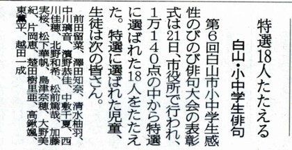 「松井樹のようになりたい」(白山市ジュニア文芸賞 最優秀賞)