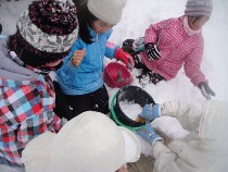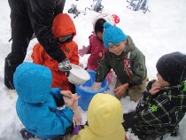 円山公園で冬の動物観察会を行いました。あいにくの天候で、動物たちや動物の足跡は目にすり事ができませんでしたが、キッズ達は思う存分に雪を楽しみました。とりわけ、アイスクリーム作りはとても盛り上がりました。