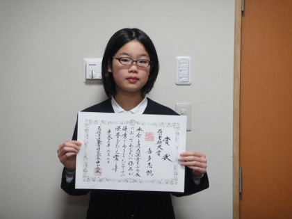 この他の受賞者には、賞状が学校へ届き次第報告します。