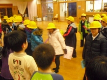 地震に備えて避難訓練をしました。揺れがおさまった後、体育館へ避難しました。「お・は・し・も」の約束を守って、素早い行動ができました。