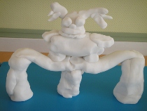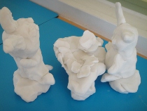 絵本「ともだちや」の好きな場面を粘土で作りました。今にも動き出しそうな作品ばかりでした。