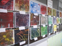 五年生は、掘り進み版画で多色刷りに挑戦しました。イメージした作品とは少し違ったかもしれませんが、どれもおもしろい作品ばかりです。