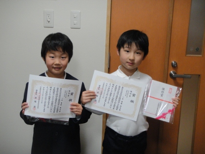 「全国児童才能開発コンテスト図画部門」で本校から2婦負が佳作に入選しましたので、本日、校長室で表彰しました。
