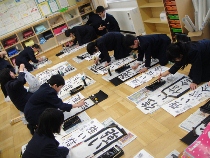 3学期の最初の勉強は書き初めでした。冬休み中の練習の成果を見せようとどの子も真剣に取り組んでいました。練習よりも上手に書けたかな?作品は、教室横の廊下に掲示してありますので、いつでも来校してご覧になってください。